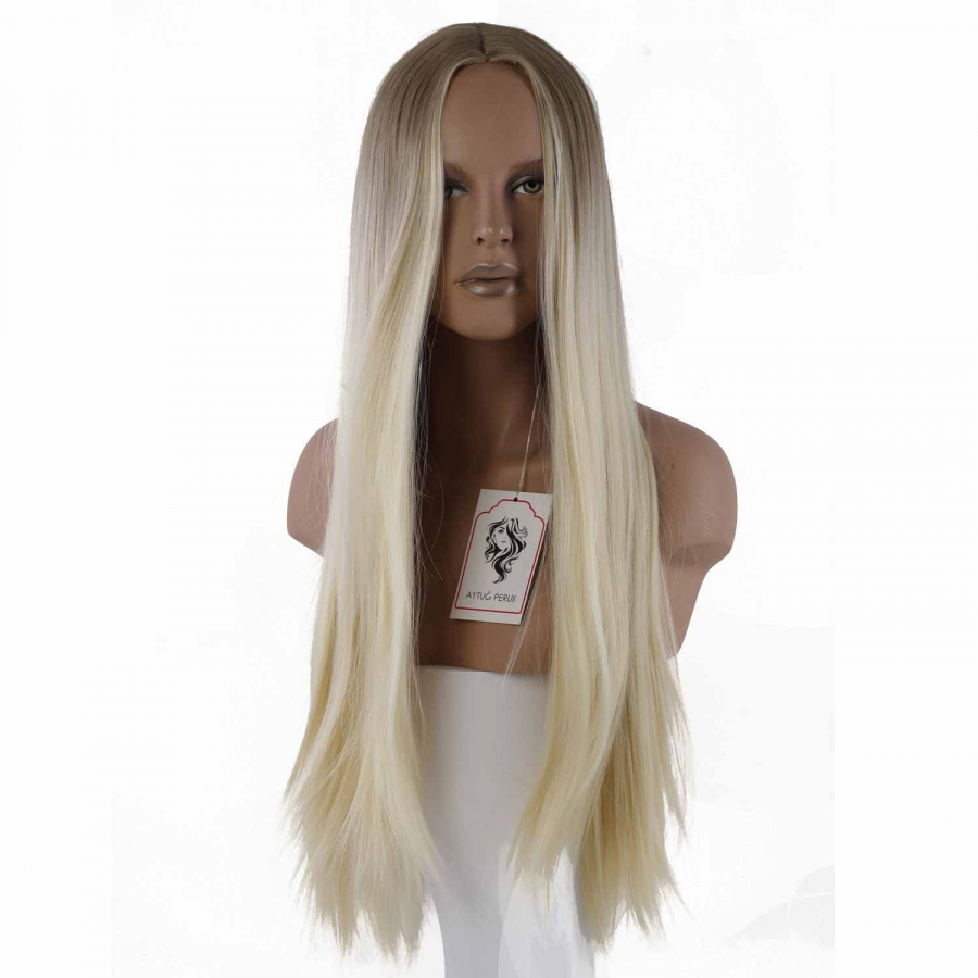 ST179 - T24 / 613 - Sentetik Peruk - Küllü Kumral, Platin Ombreli - Uzun - Düz