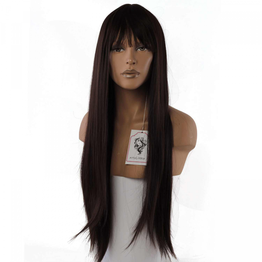 Model: Cilt ayrımlı, Uzun, Düz, Kaküllü Sentetik Peruk